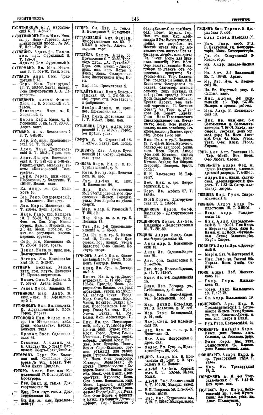 Алфавитный указатель адресовъ жителей г. Москвы и ея пригородовъ - page 145
