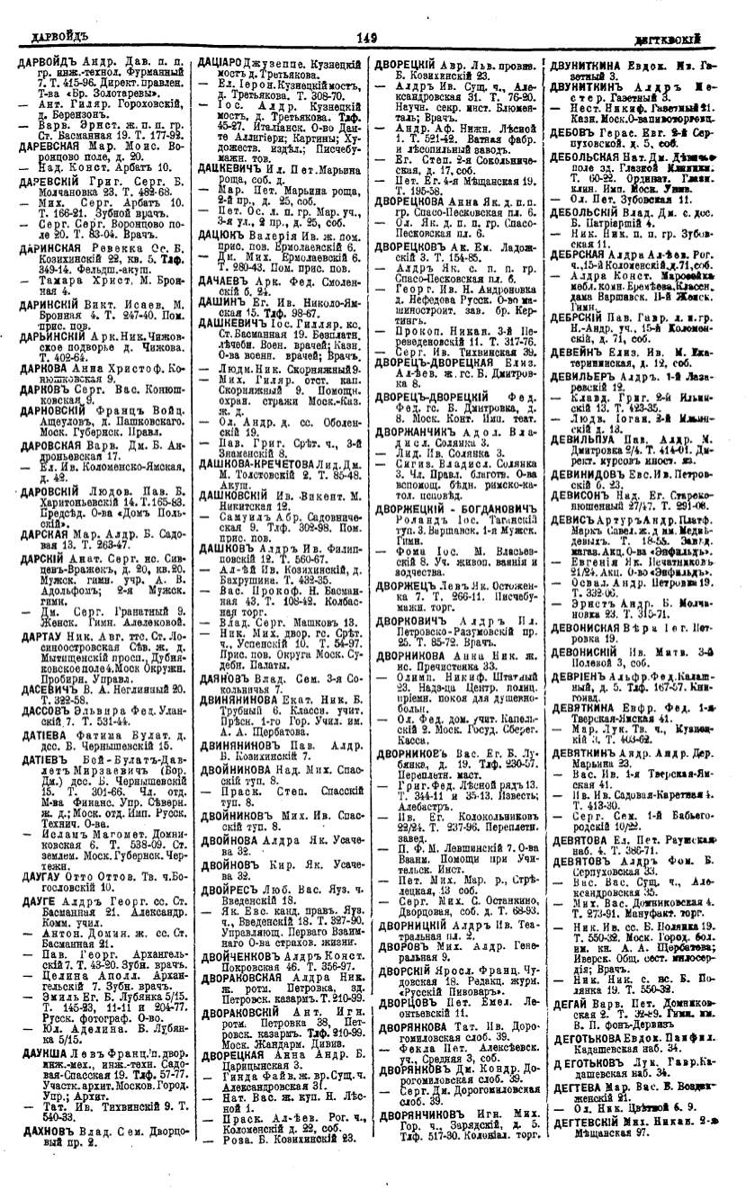 Алфавитный указатель адресовъ жителей г. Москвы и ея пригородовъ - page 149