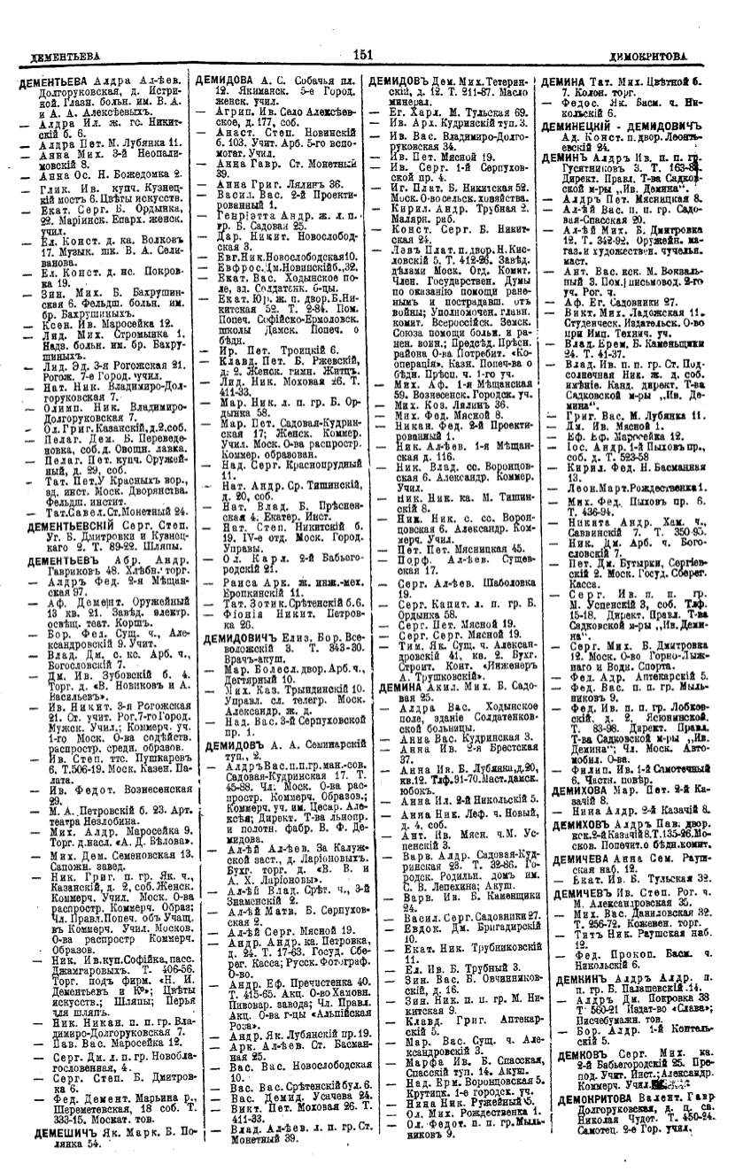 Алфавитный указатель адресовъ жителей г. Москвы и ея пригородовъ - page 151