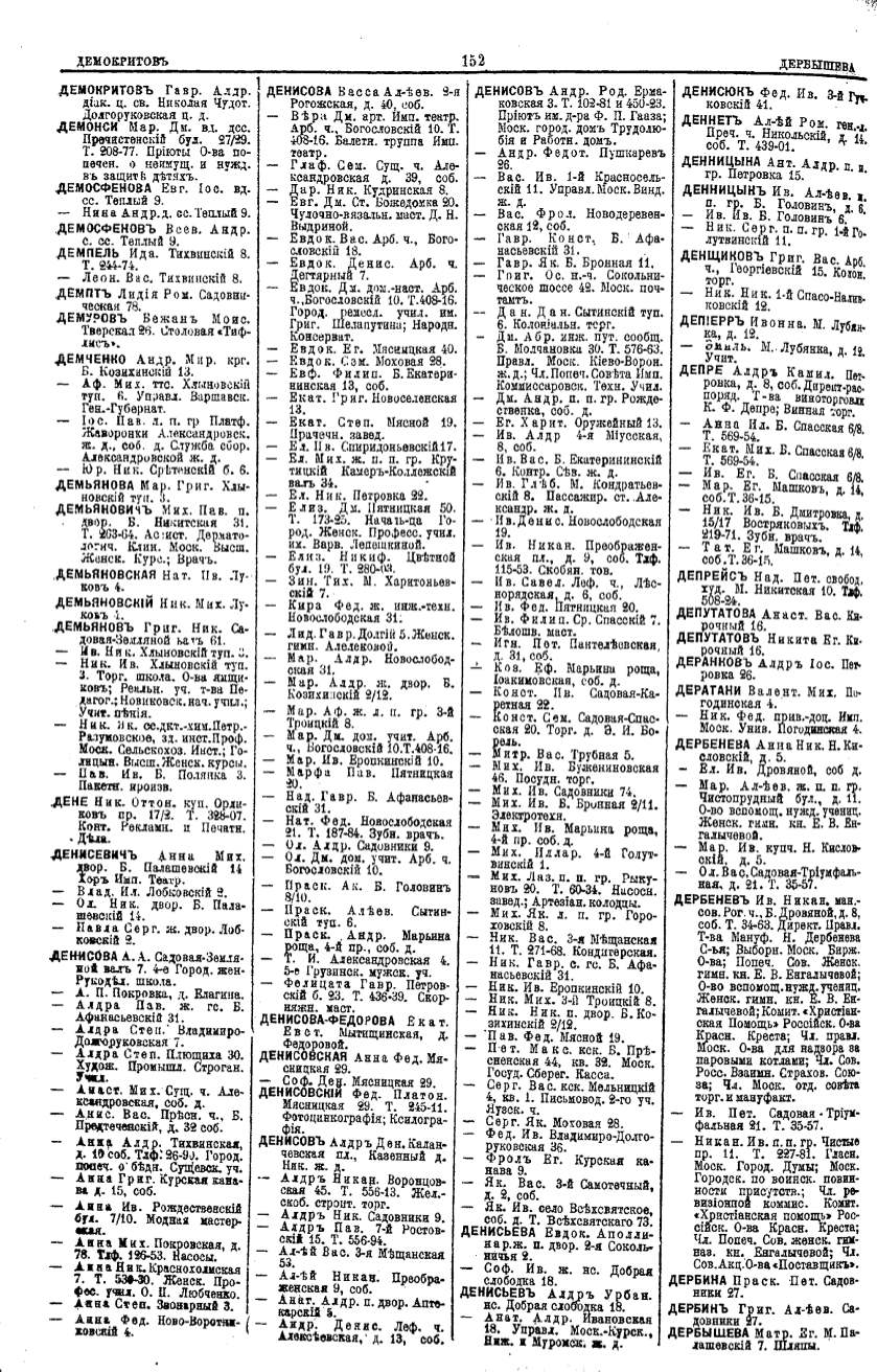 Алфавитный указатель адресовъ жителей г. Москвы и ея пригородовъ - page 152