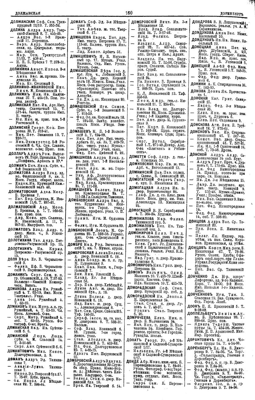 Алфавитный указатель адресовъ жителей г. Москвы и ея пригородовъ - page 160