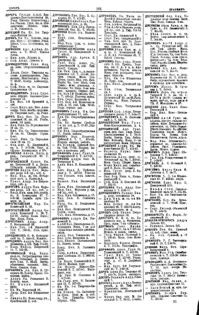 Алфавитный указатель адресовъ жителей г. Москвы и ея пригородовъ - page 161