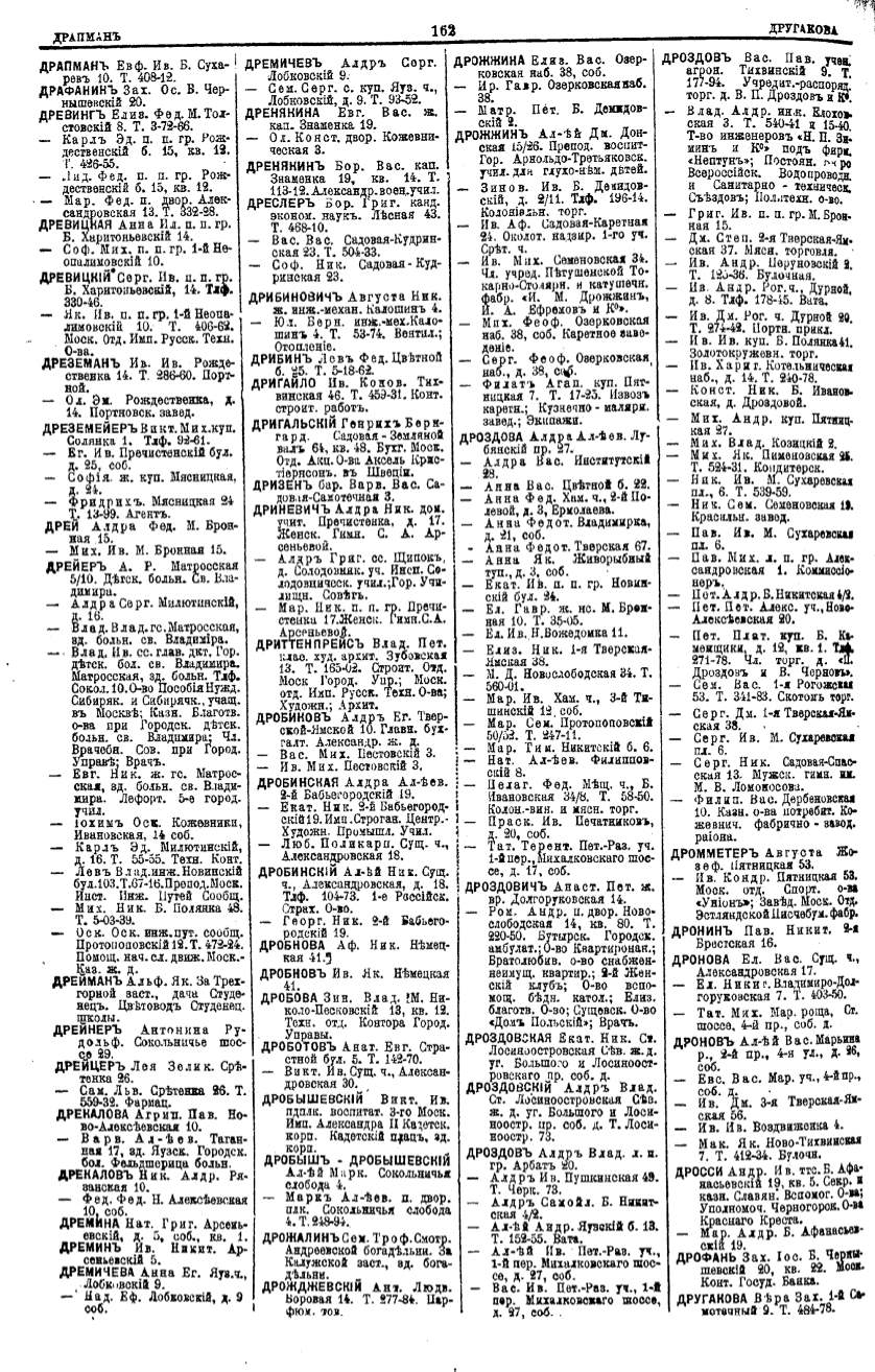 Алфавитный указатель адресовъ жителей г. Москвы и ея пригородовъ - page 162