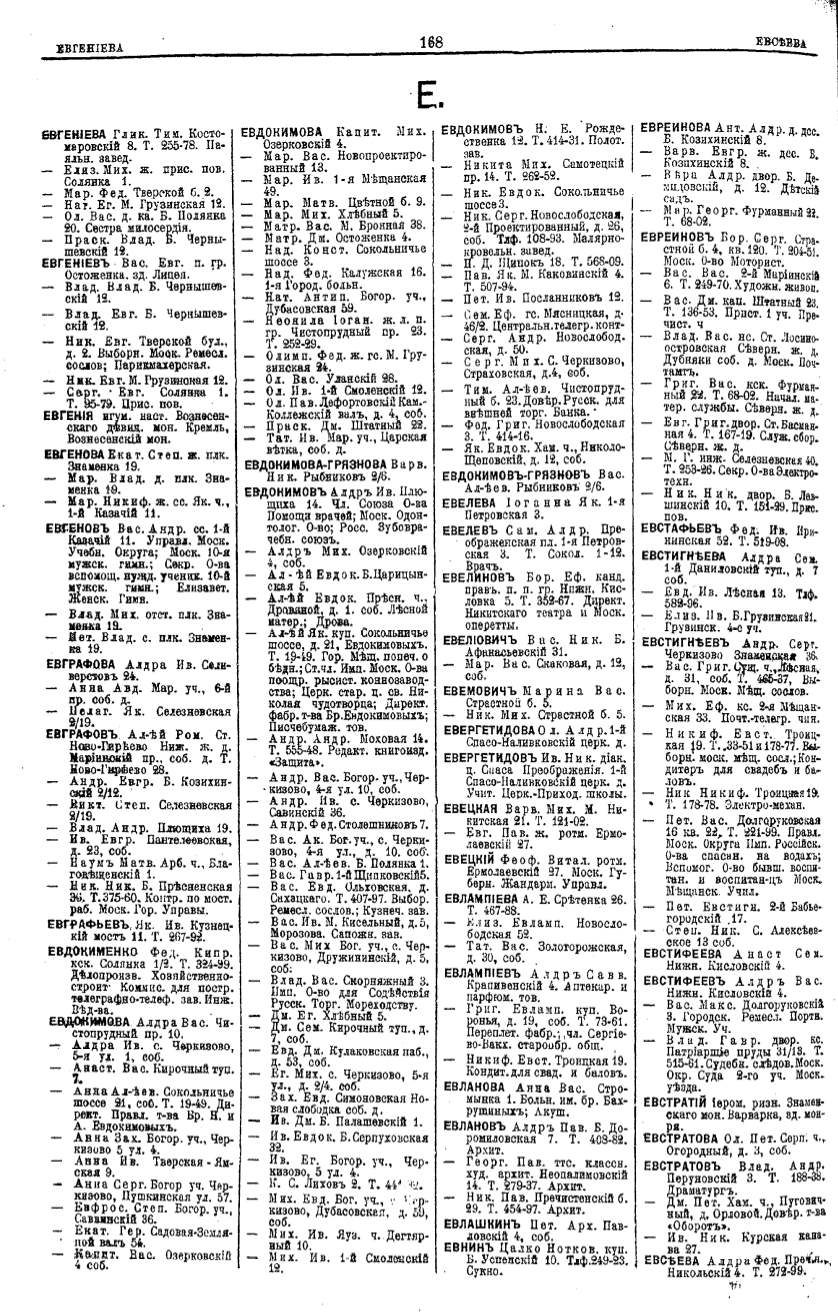 Алфавитный указатель адресовъ жителей г. Москвы и ея пригородовъ - page 168