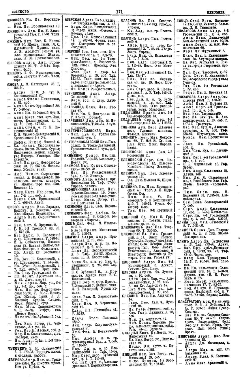 Алфавитный указатель адресовъ жителей г. Москвы и ея пригородовъ - page 171