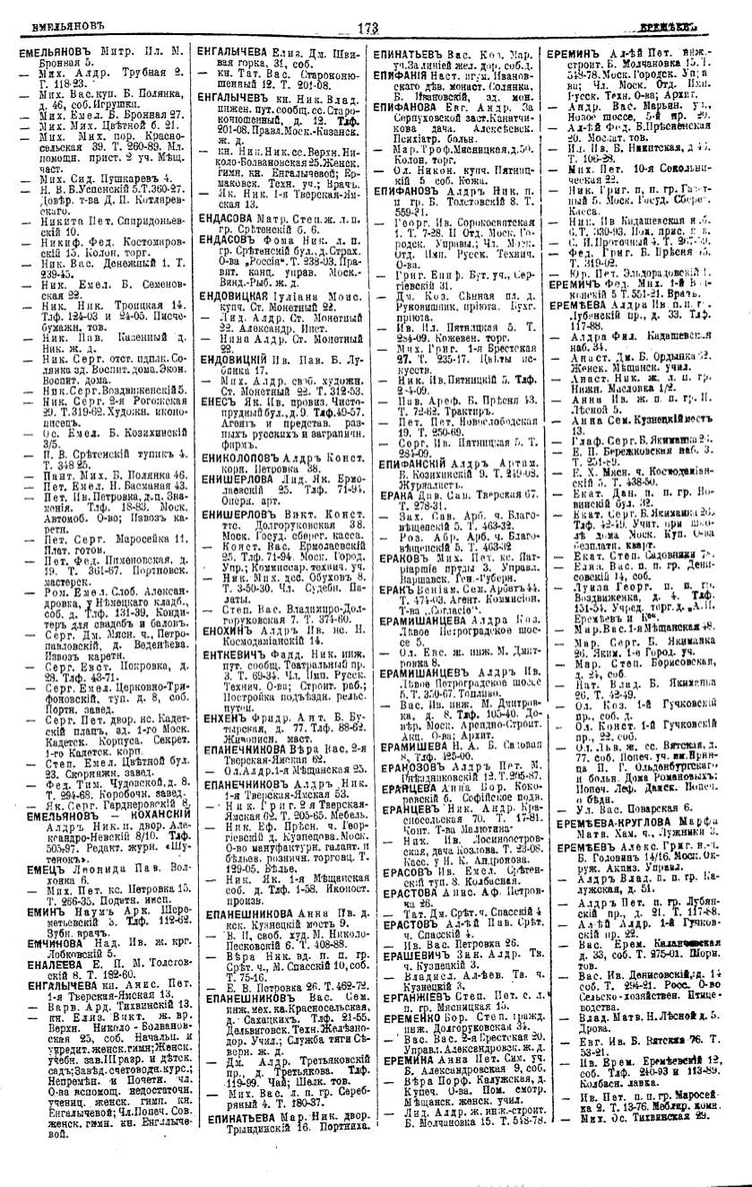 Алфавитный указатель адресовъ жителей г. Москвы и ея пригородовъ - page 173