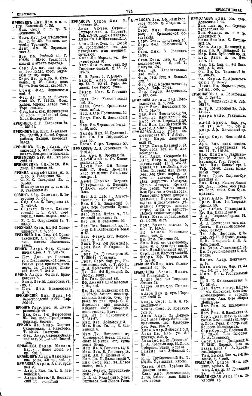Алфавитный указатель адресовъ жителей г. Москвы и ея пригородовъ - page 174