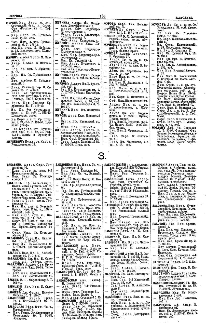 Алфавитный указатель адресовъ жителей г. Москвы и ея пригородовъ - page 181
