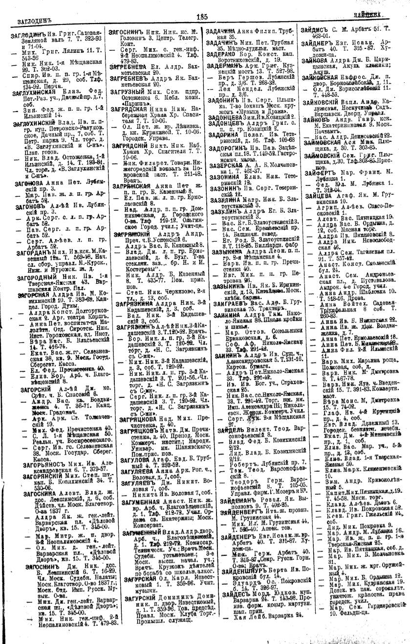Алфавитный указатель адресовъ жителей г. Москвы и ея пригородовъ - page 183