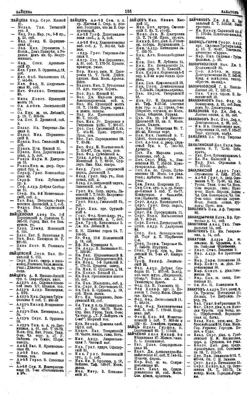 Алфавитный указатель адресовъ жителей г. Москвы и ея пригородовъ - page 184
