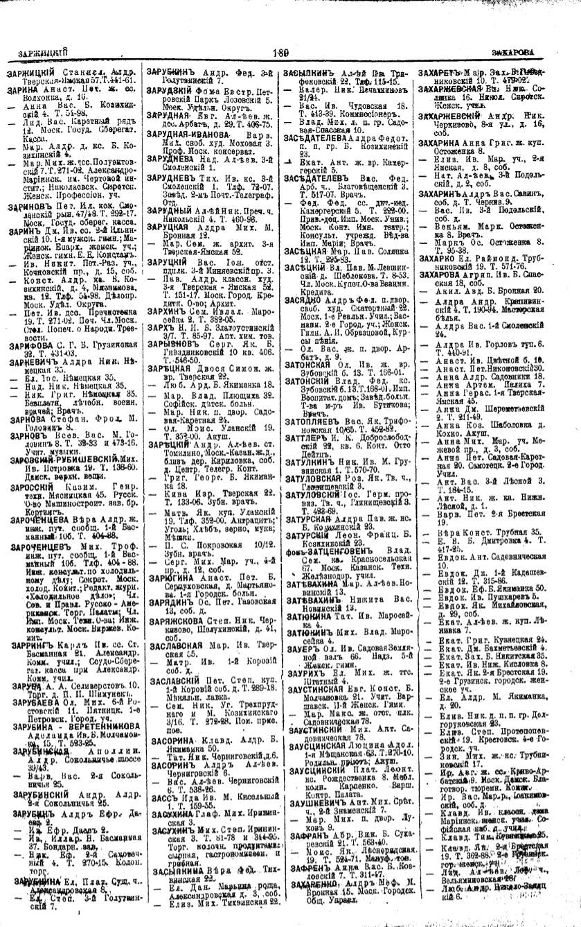 Алфавитный указатель адресовъ жителей г. Москвы и ея пригородовъ - page 187