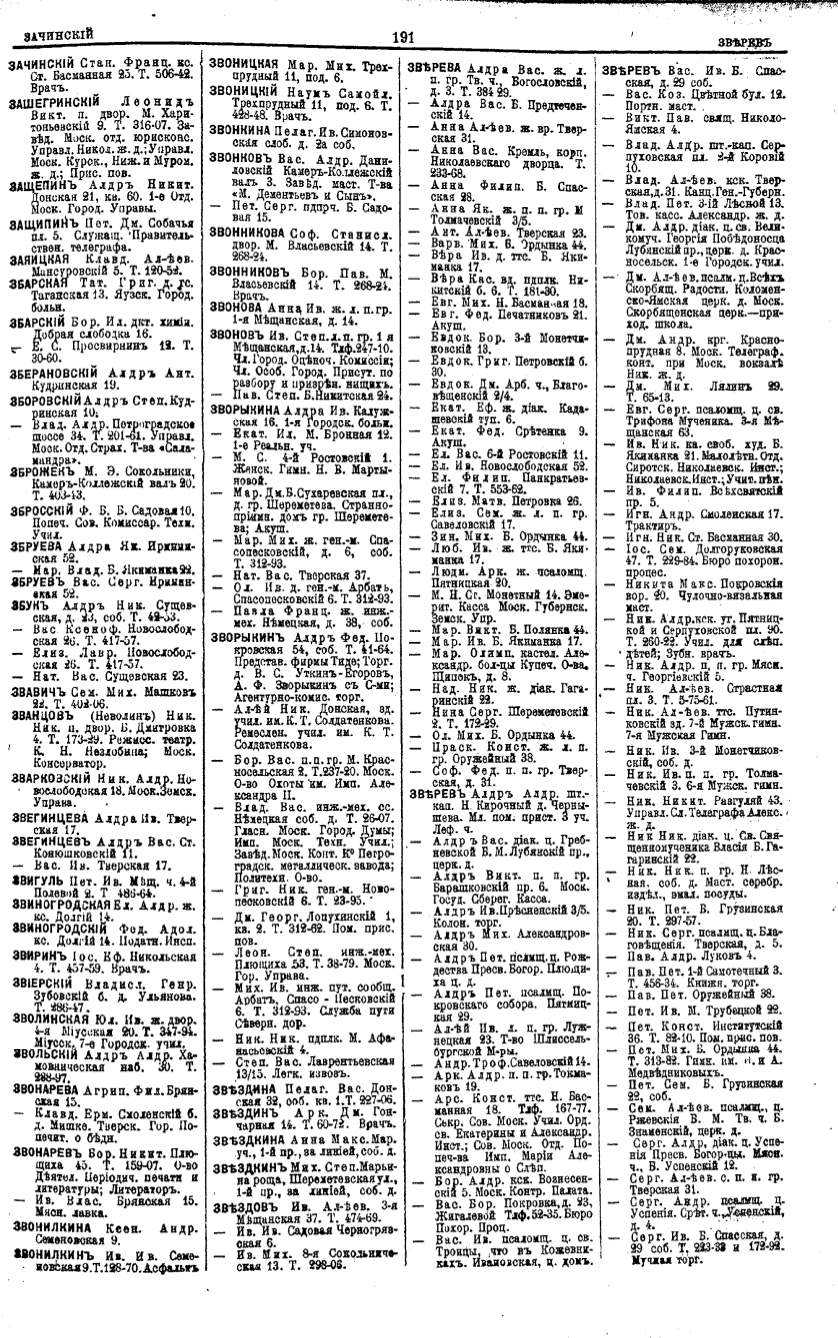 Алфавитный указатель адресовъ жителей г. Москвы и ея пригородовъ - page 189
