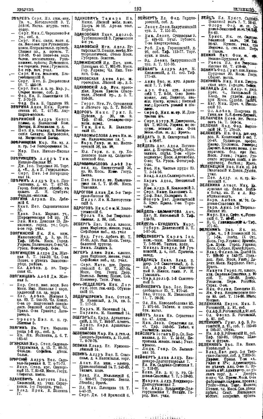 Алфавитный указатель адресовъ жителей г. Москвы и ея пригородовъ - page 190