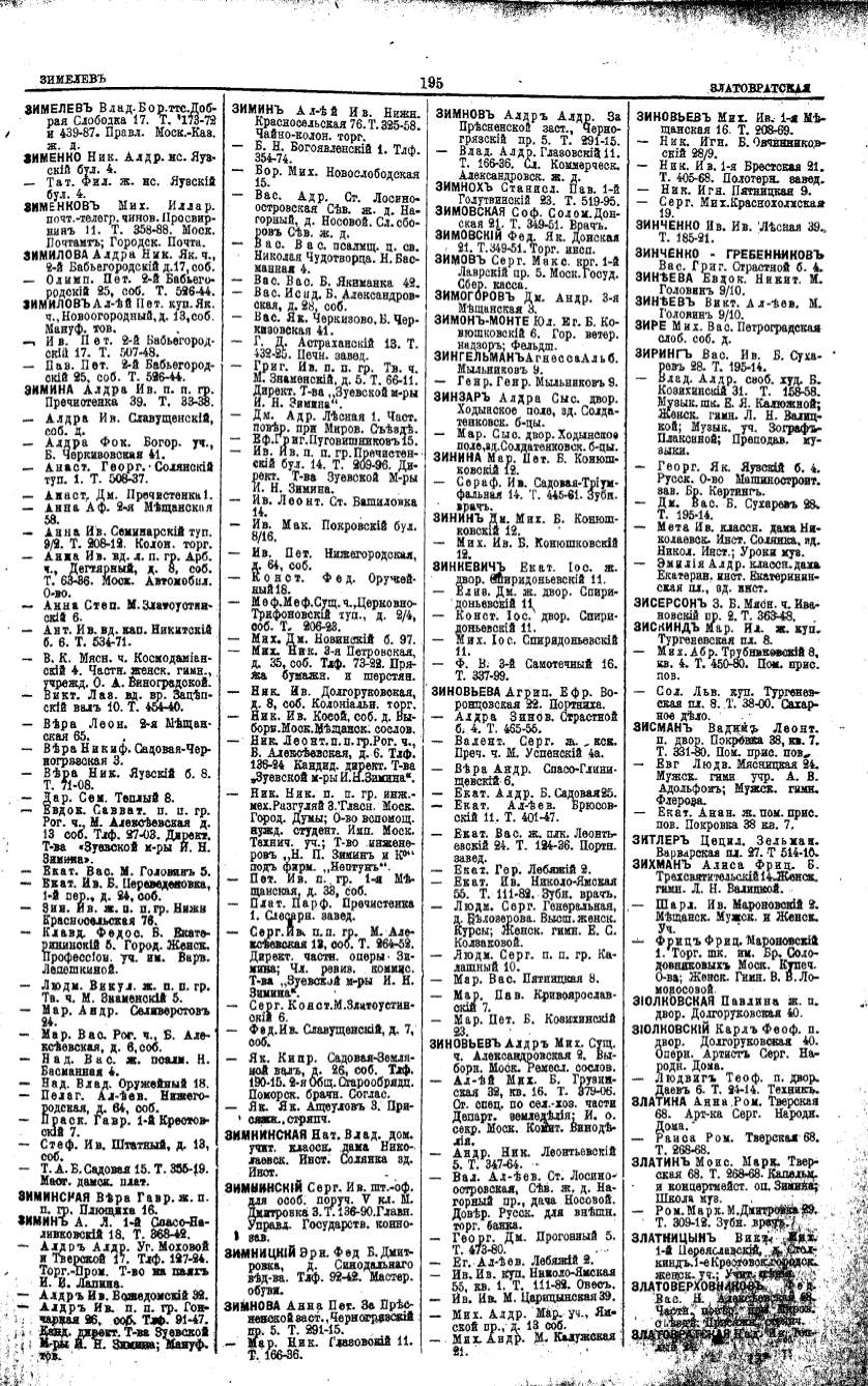 Алфавитный указатель адресовъ жителей г. Москвы и ея пригородовъ - page 193