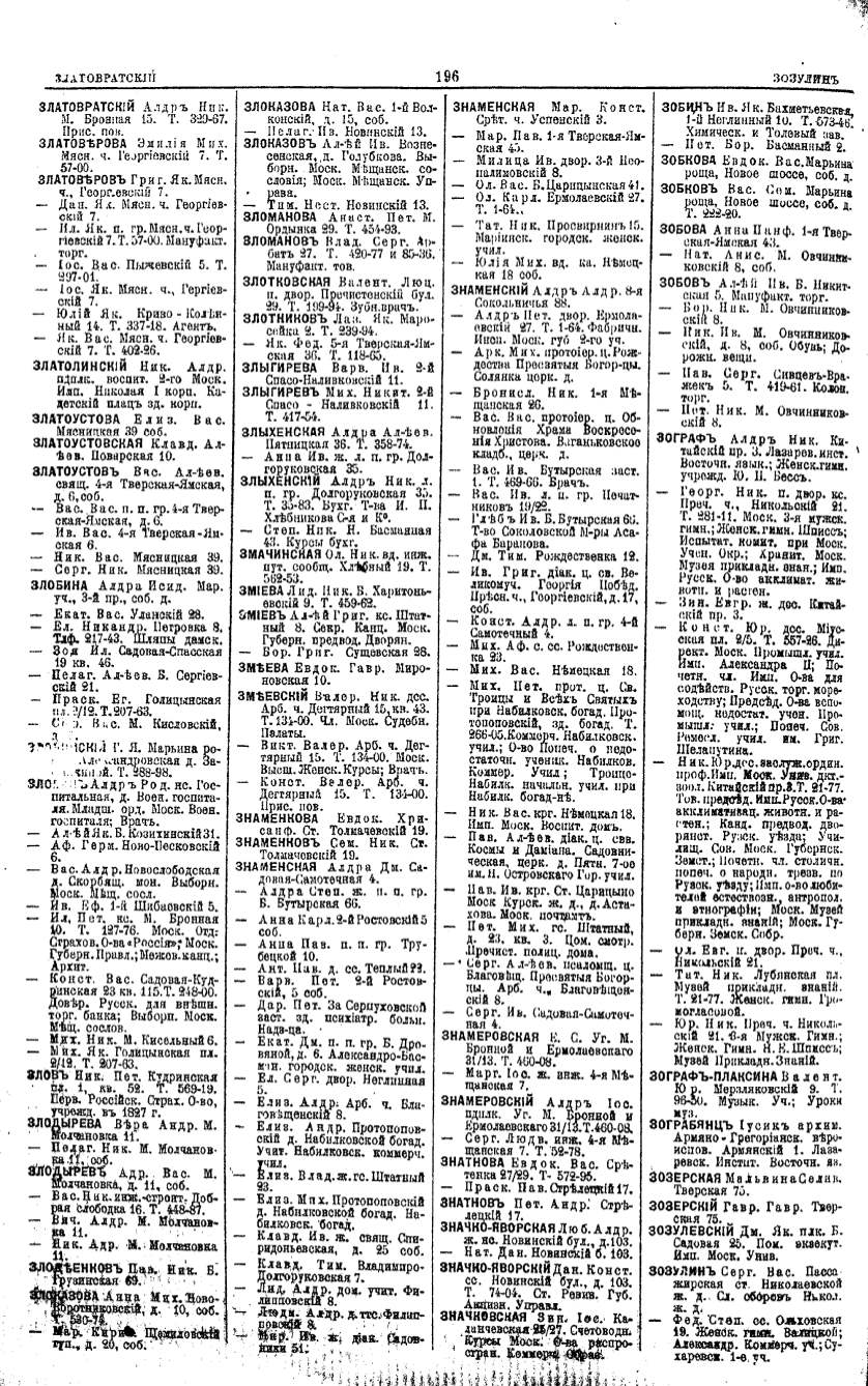 Алфавитный указатель адресовъ жителей г. Москвы и ея пригородовъ - page 194