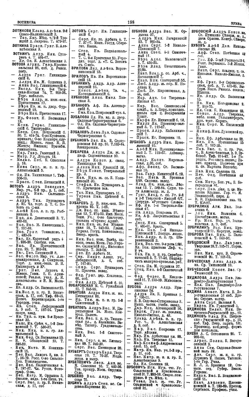 Алфавитный указатель адресовъ жителей г. Москвы и ея пригородовъ - page 196