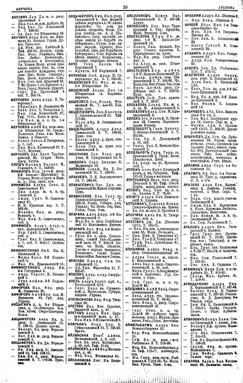 Алфавитный указатель адресовъ жителей г. Москвы и ея пригородовъ - page 20