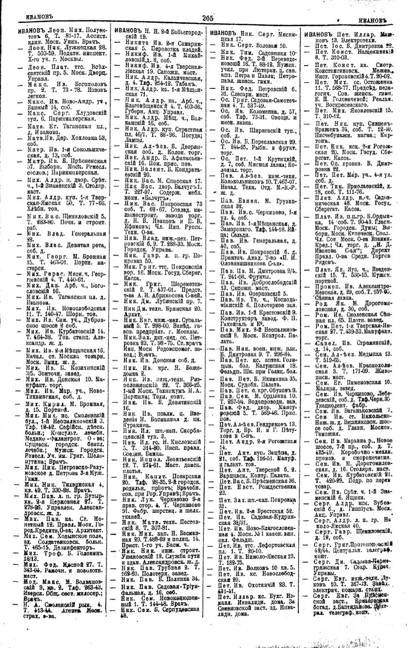 Алфавитный указатель адресовъ жителей г. Москвы и ея пригородовъ - page 203