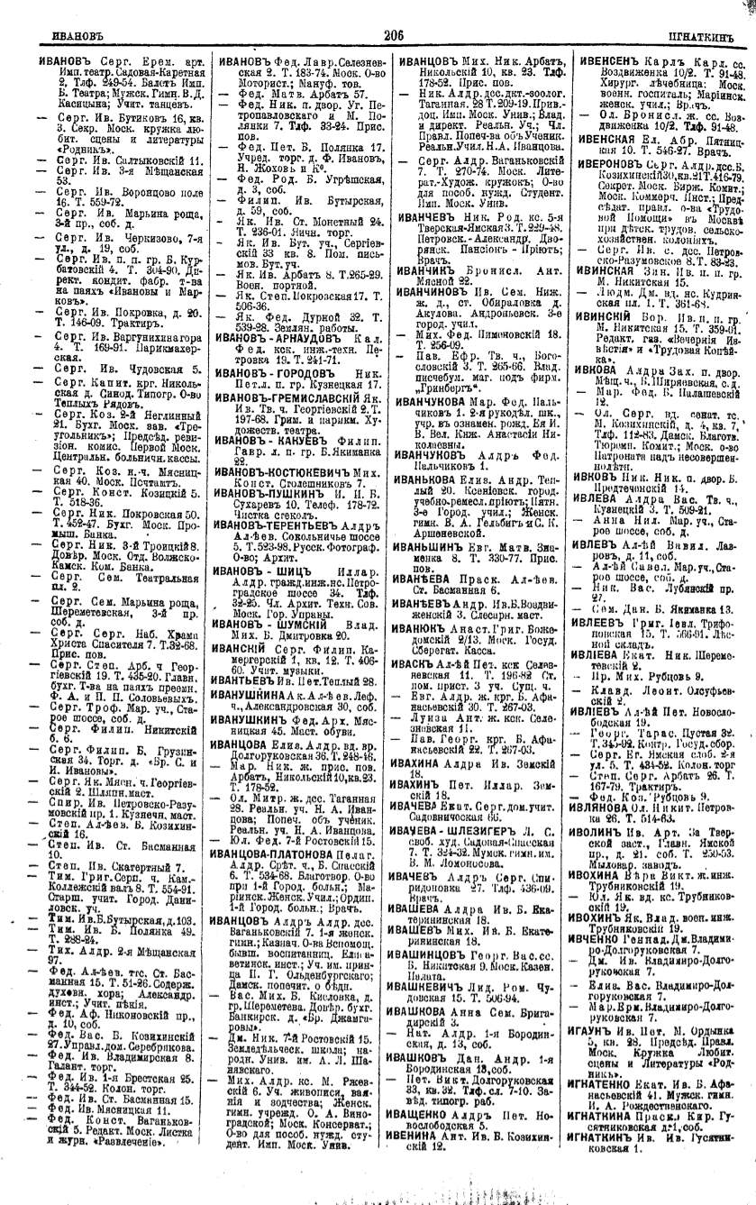 Алфавитный указатель адресовъ жителей г. Москвы и ея пригородовъ - page 204
