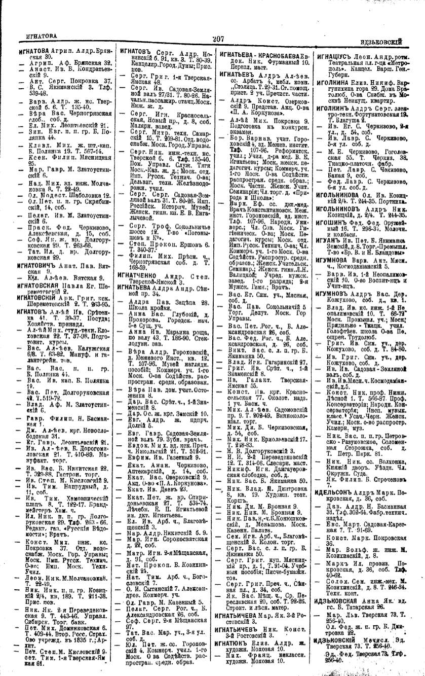 Алфавитный указатель адресовъ жителей г. Москвы и ея пригородовъ - page 205