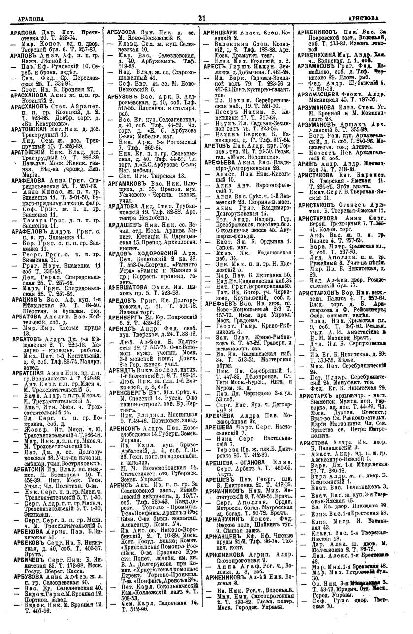 Алфавитный указатель адресовъ жителей г. Москвы и ея пригородовъ - page 21