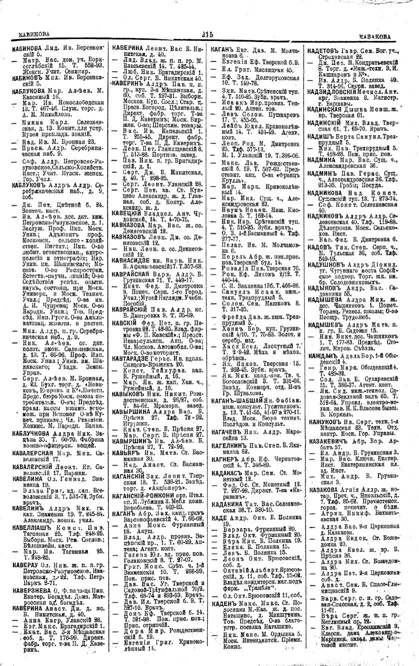Алфавитный указатель адресовъ жителей г. Москвы и ея пригородовъ - page 213