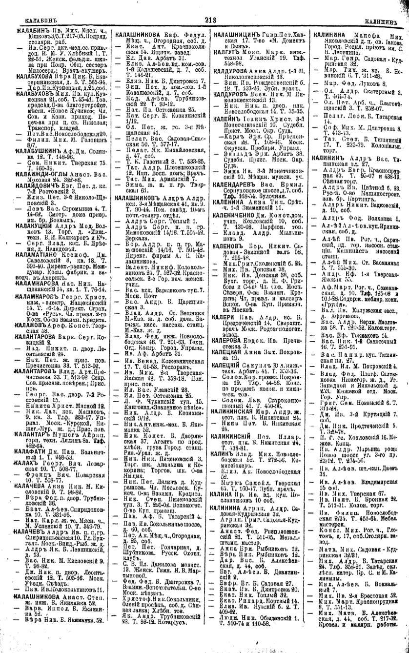 Алфавитный указатель адресовъ жителей г. Москвы и ея пригородовъ - page 216