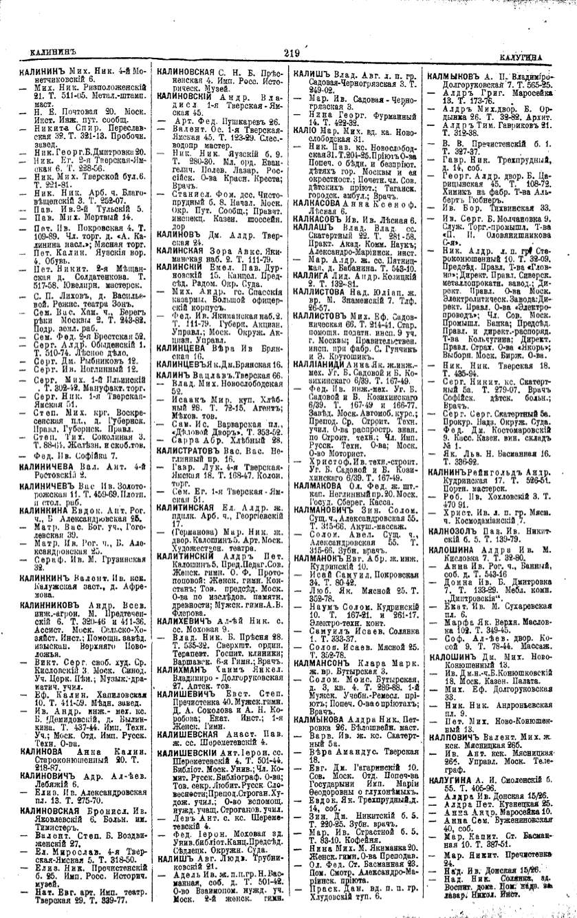 Алфавитный указатель адресовъ жителей г. Москвы и ея пригородовъ - page 217