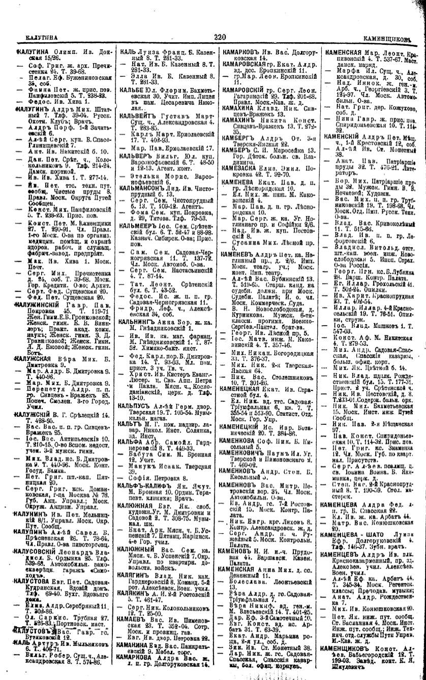 Алфавитный указатель адресовъ жителей г. Москвы и ея пригородовъ - page 218