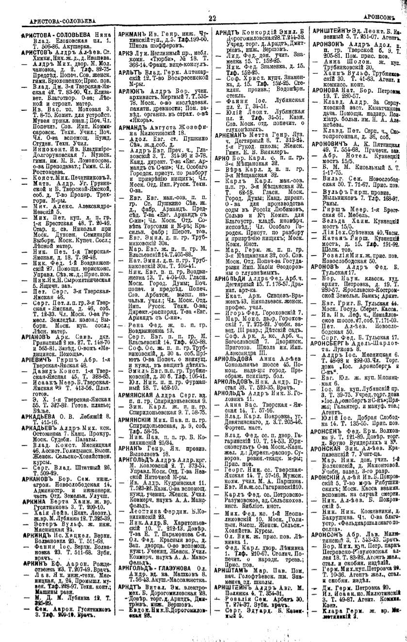 Алфавитный указатель адресовъ жителей г. Москвы и ея пригородовъ - page 22