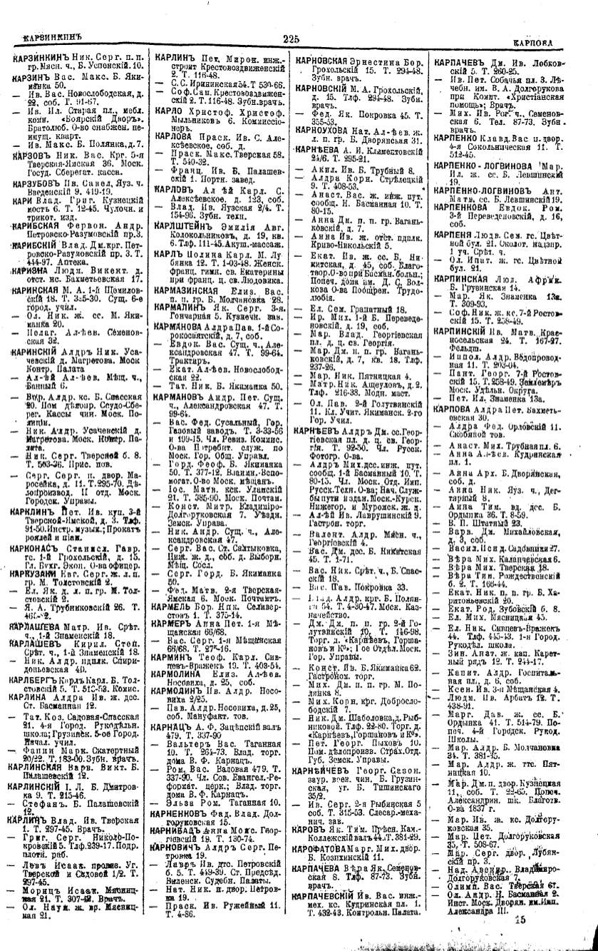 Алфавитный указатель адресовъ жителей г. Москвы и ея пригородовъ - page 223