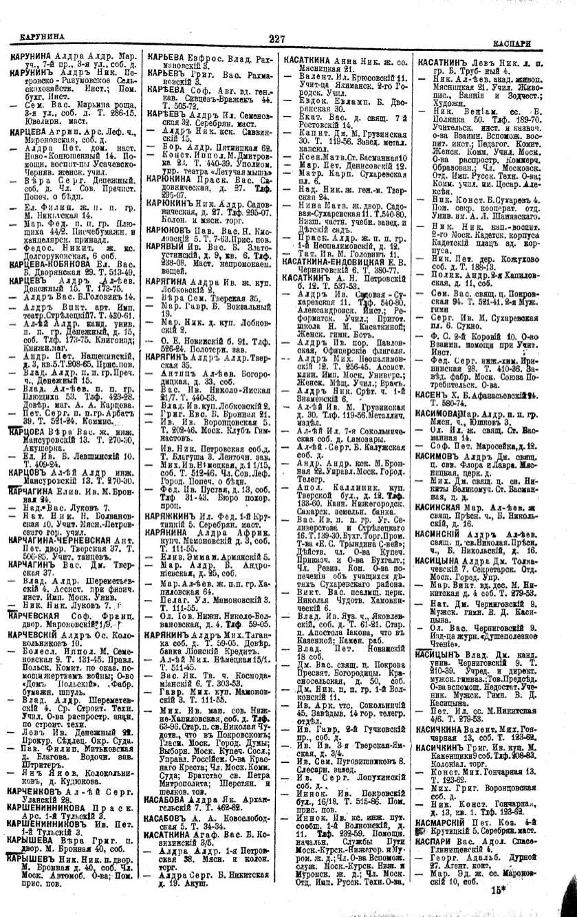 Алфавитный указатель адресовъ жителей г. Москвы и ея пригородовъ - page 225