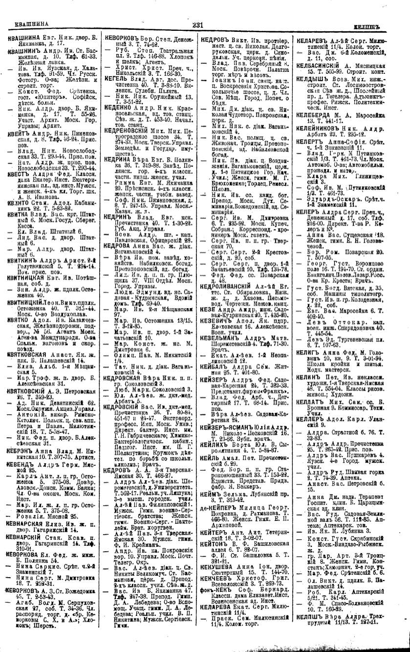 Алфавитный указатель адресовъ жителей г. Москвы и ея пригородовъ - page 229