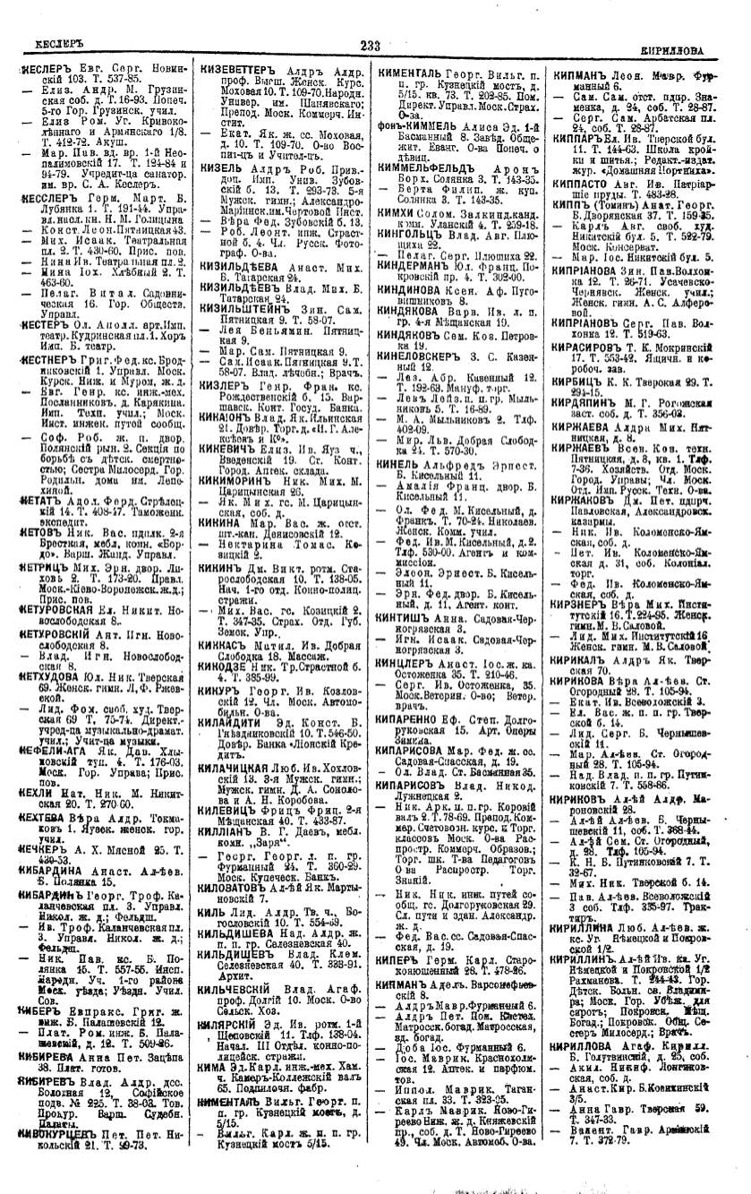 Алфавитный указатель адресовъ жителей г. Москвы и ея пригородовъ - page 231