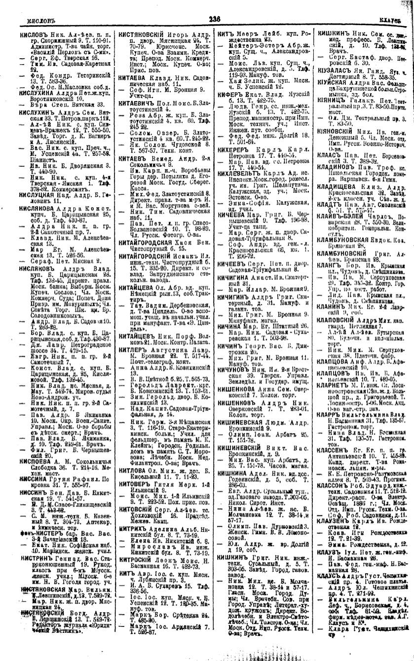 Алфавитный указатель адресовъ жителей г. Москвы и ея пригородовъ - page 234