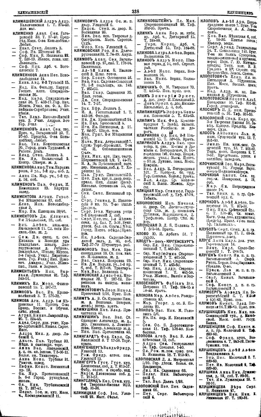 Алфавитный указатель адресовъ жителей г. Москвы и ея пригородовъ - page 236
