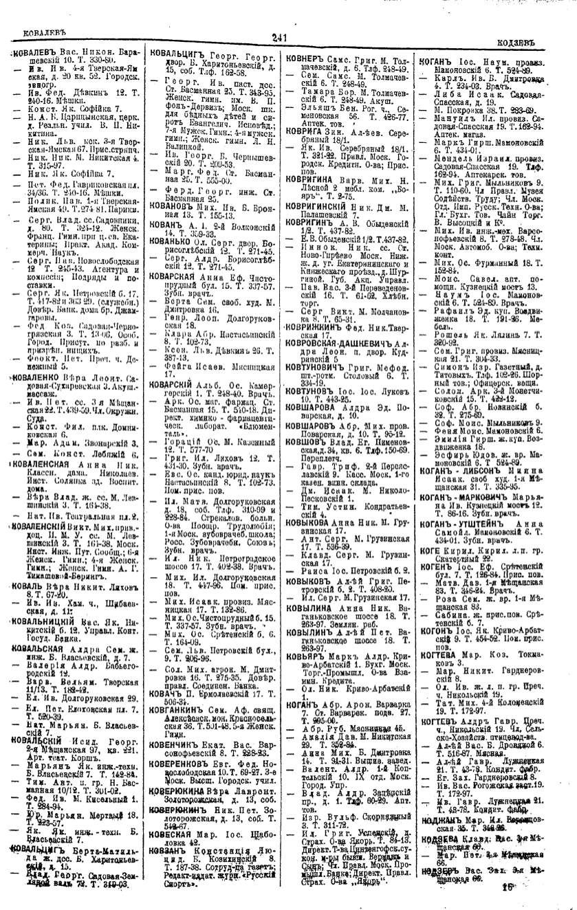 Алфавитный указатель адресовъ жителей г. Москвы и ея пригородовъ - page 239