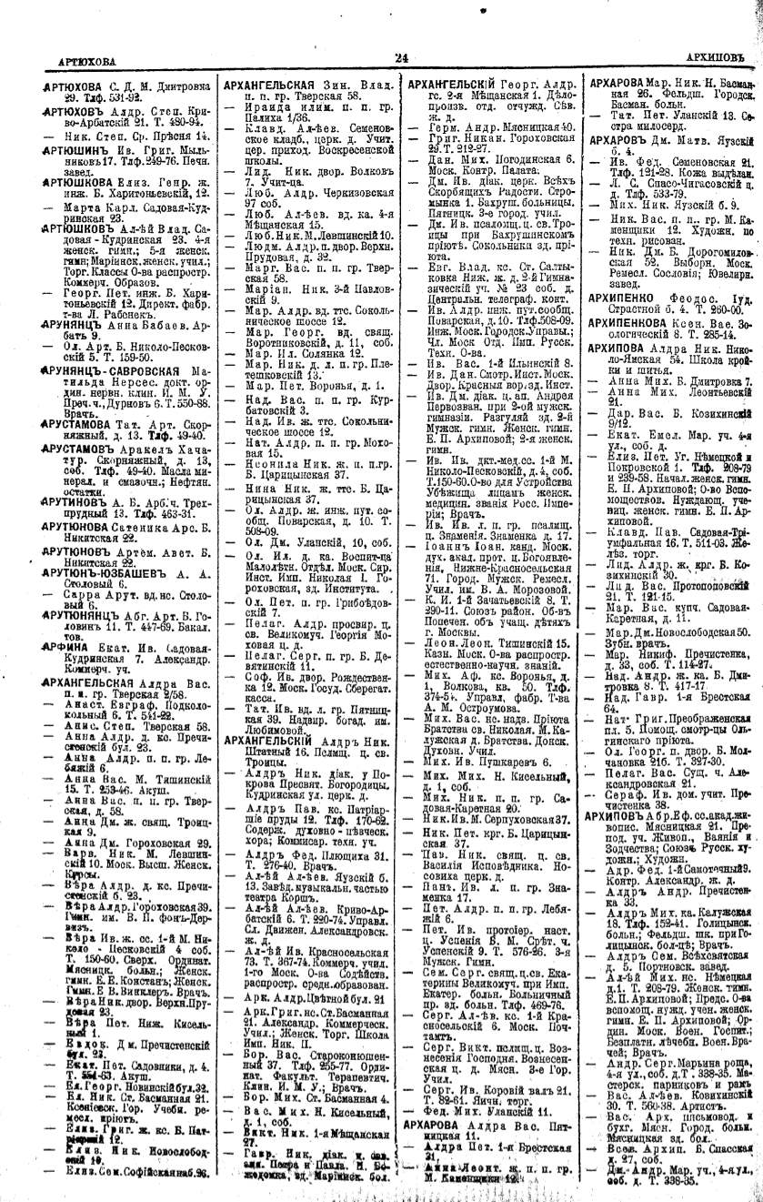 Алфавитный указатель адресовъ жителей г. Москвы и ея пригородовъ - page 24
