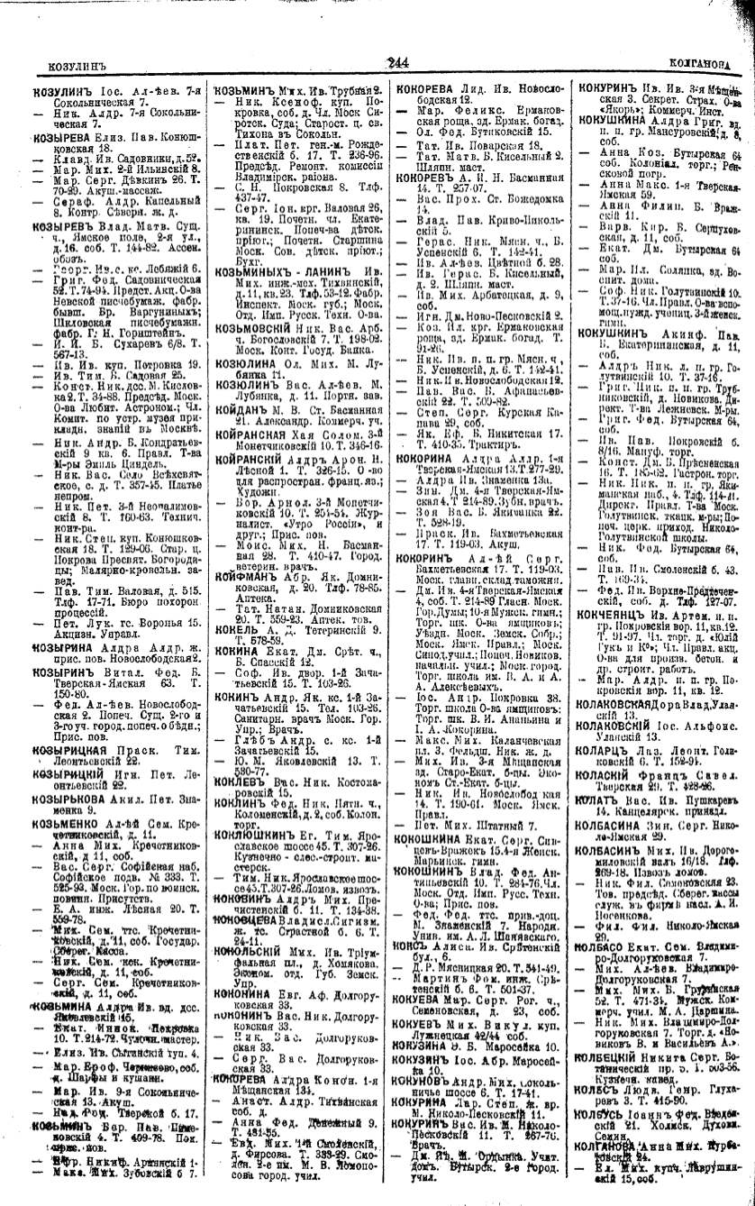 Алфавитный указатель адресовъ жителей г. Москвы и ея пригородовъ - page 242