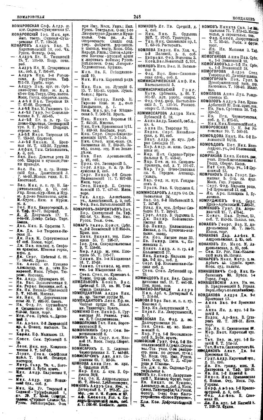 Алфавитный указатель адресовъ жителей г. Москвы и ея пригородовъ - page 246