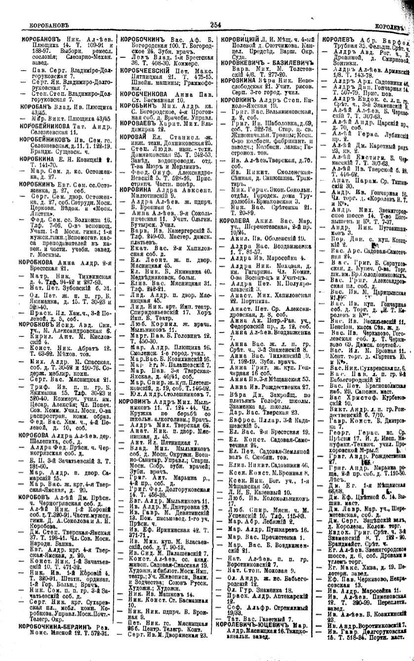 Алфавитный указатель адресовъ жителей г. Москвы и ея пригородовъ - page 252