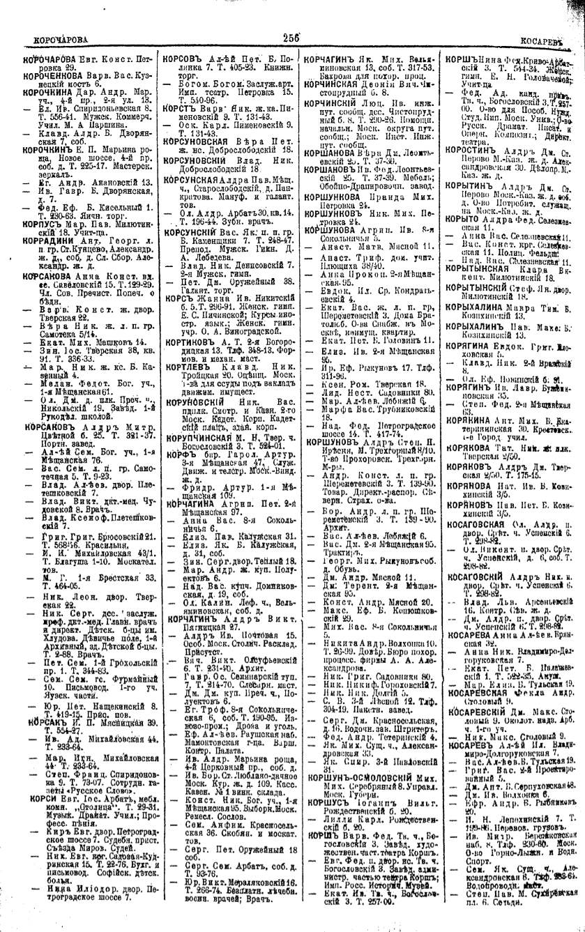 Алфавитный указатель адресовъ жителей г. Москвы и ея пригородовъ - page 254