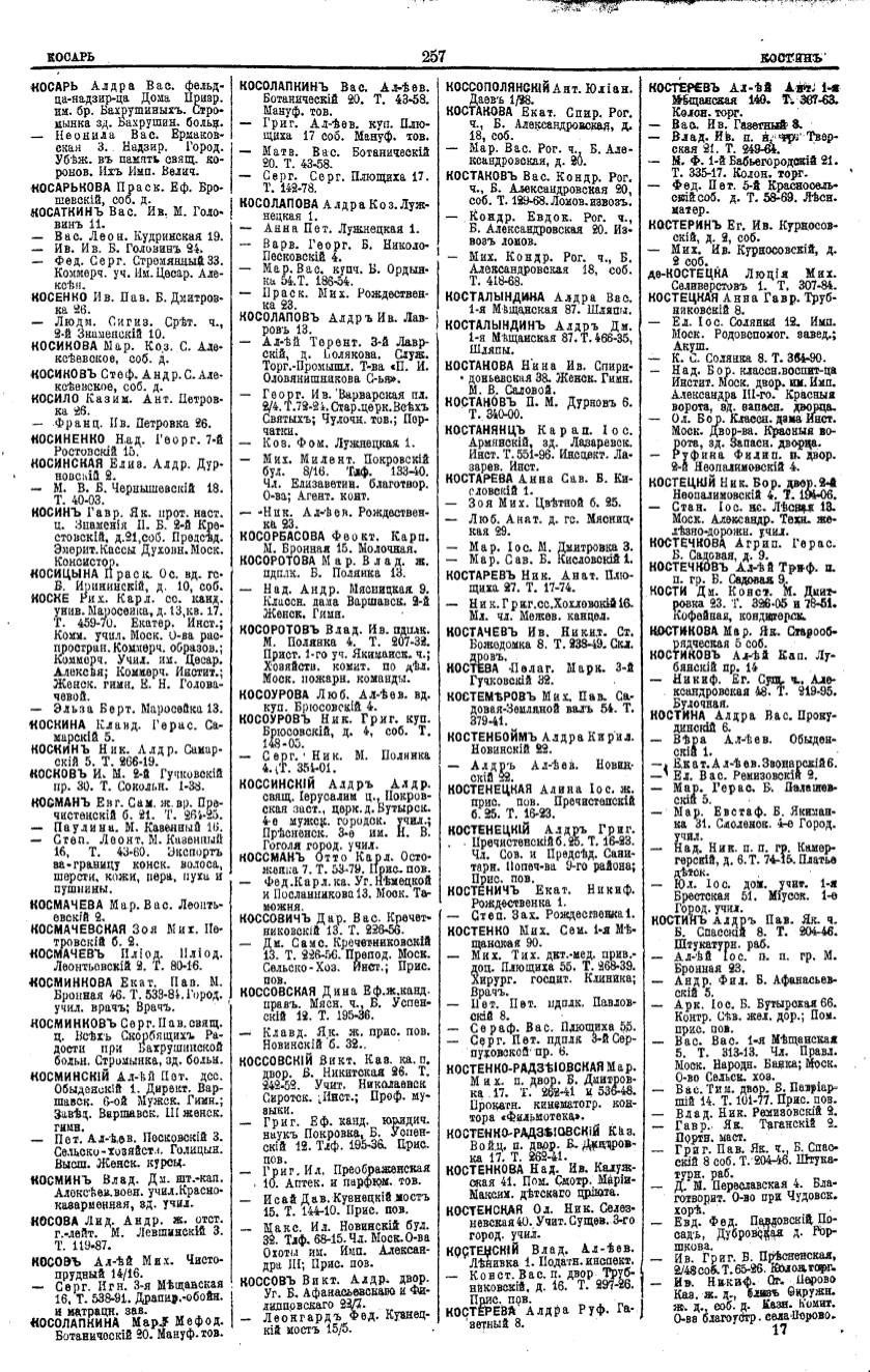 Алфавитный указатель адресовъ жителей г. Москвы и ея пригородовъ - page 255