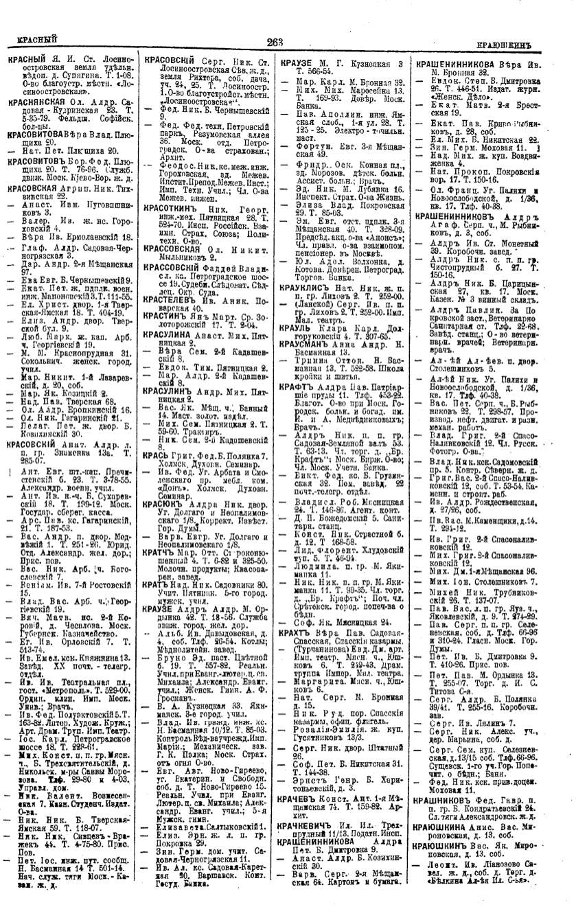 Алфавитный указатель адресовъ жителей г. Москвы и ея пригородовъ - page 261
