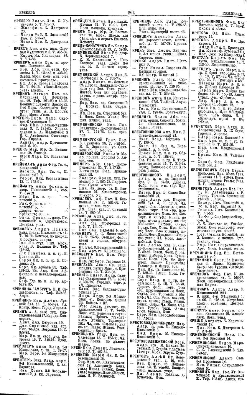 Алфавитный указатель адресовъ жителей г. Москвы и ея пригородовъ - page 262