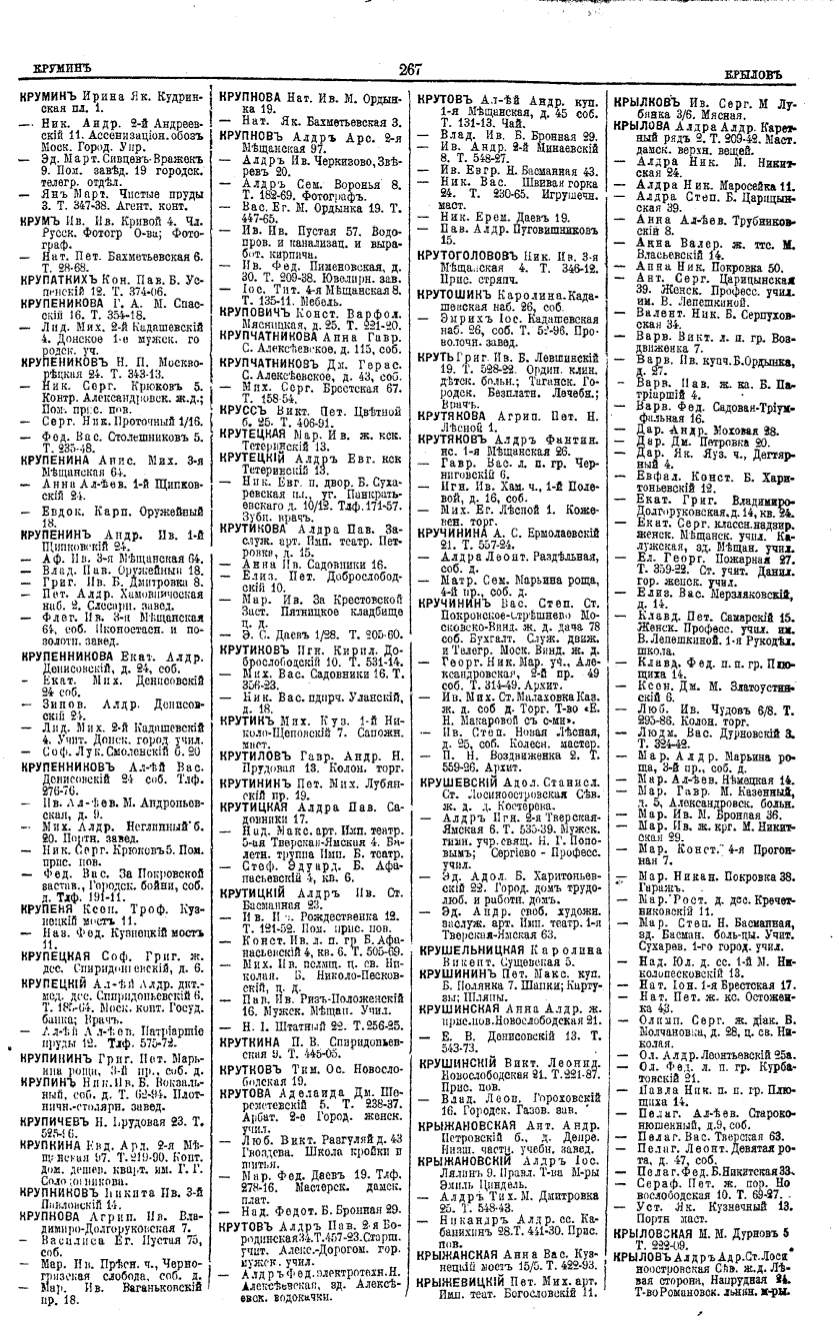 Алфавитный указатель адресовъ жителей г. Москвы и ея пригородовъ - page 265