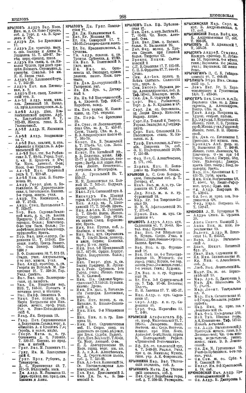 Алфавитный указатель адресовъ жителей г. Москвы и ея пригородовъ - page 266