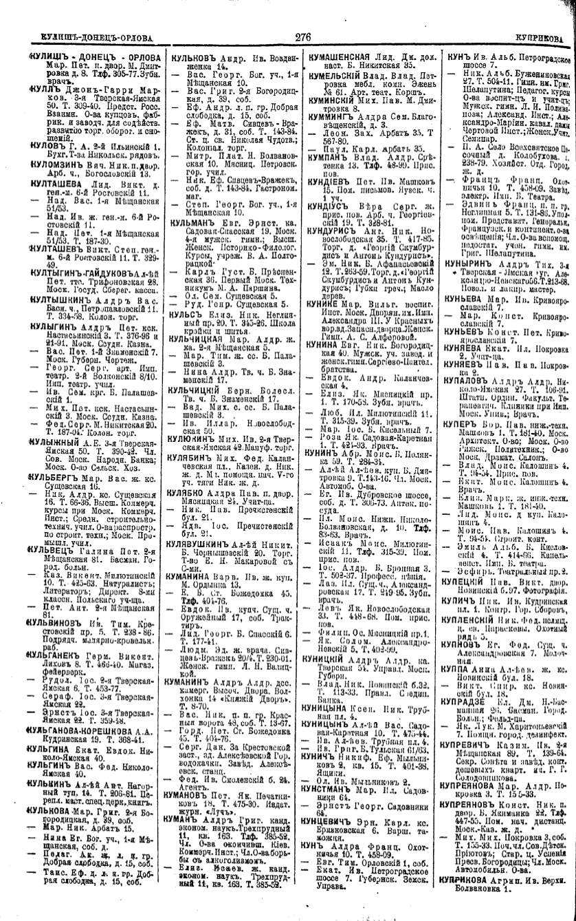 Алфавитный указатель адресовъ жителей г. Москвы и ея пригородовъ - page 274