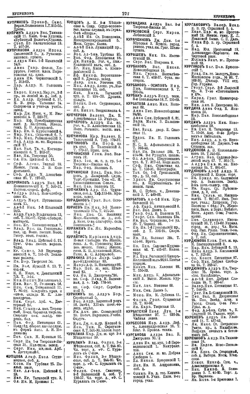 Алфавитный указатель адресовъ жителей г. Москвы и ея пригородовъ - page 275