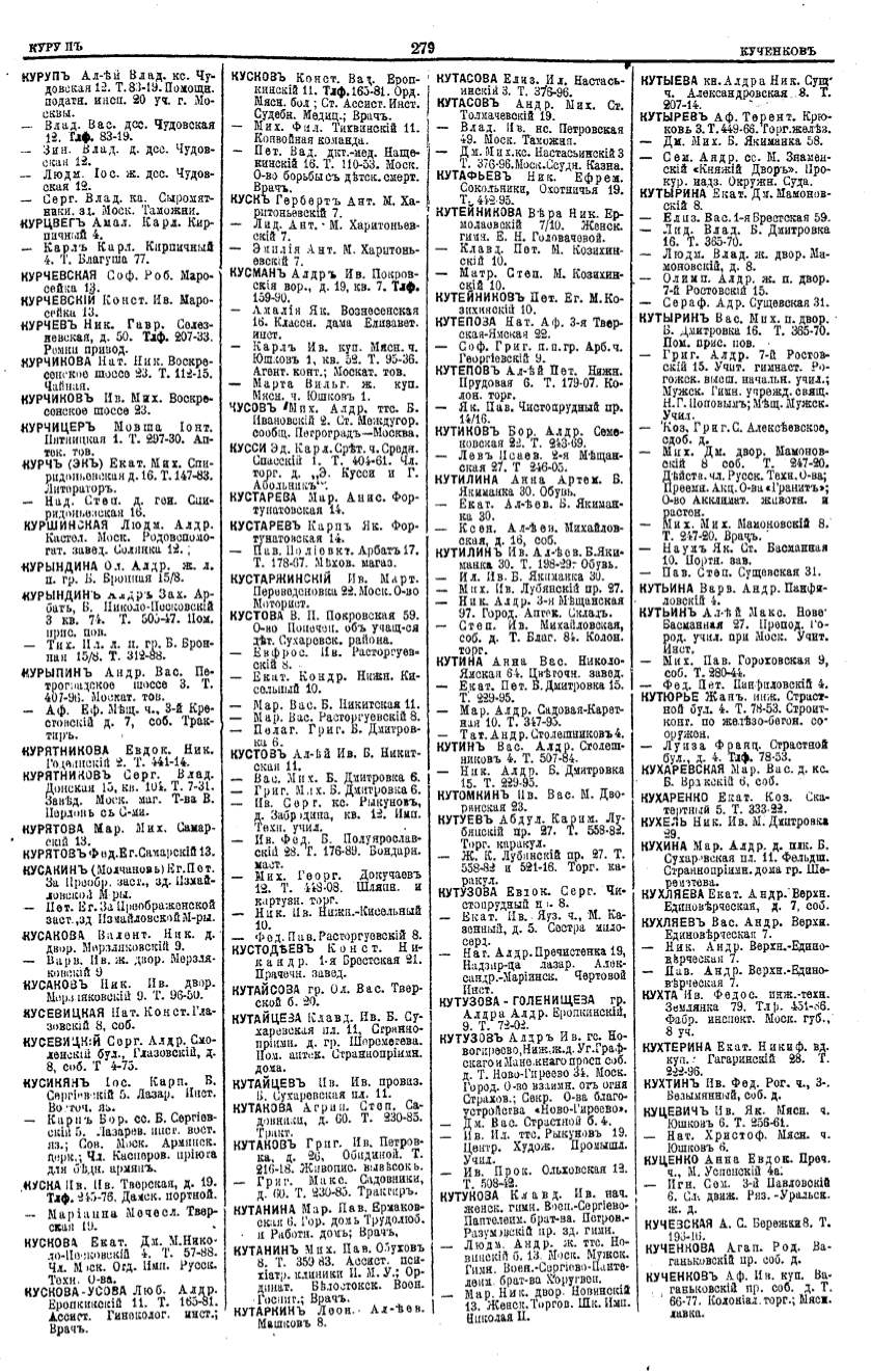 Алфавитный указатель адресовъ жителей г. Москвы и ея пригородовъ - page 277